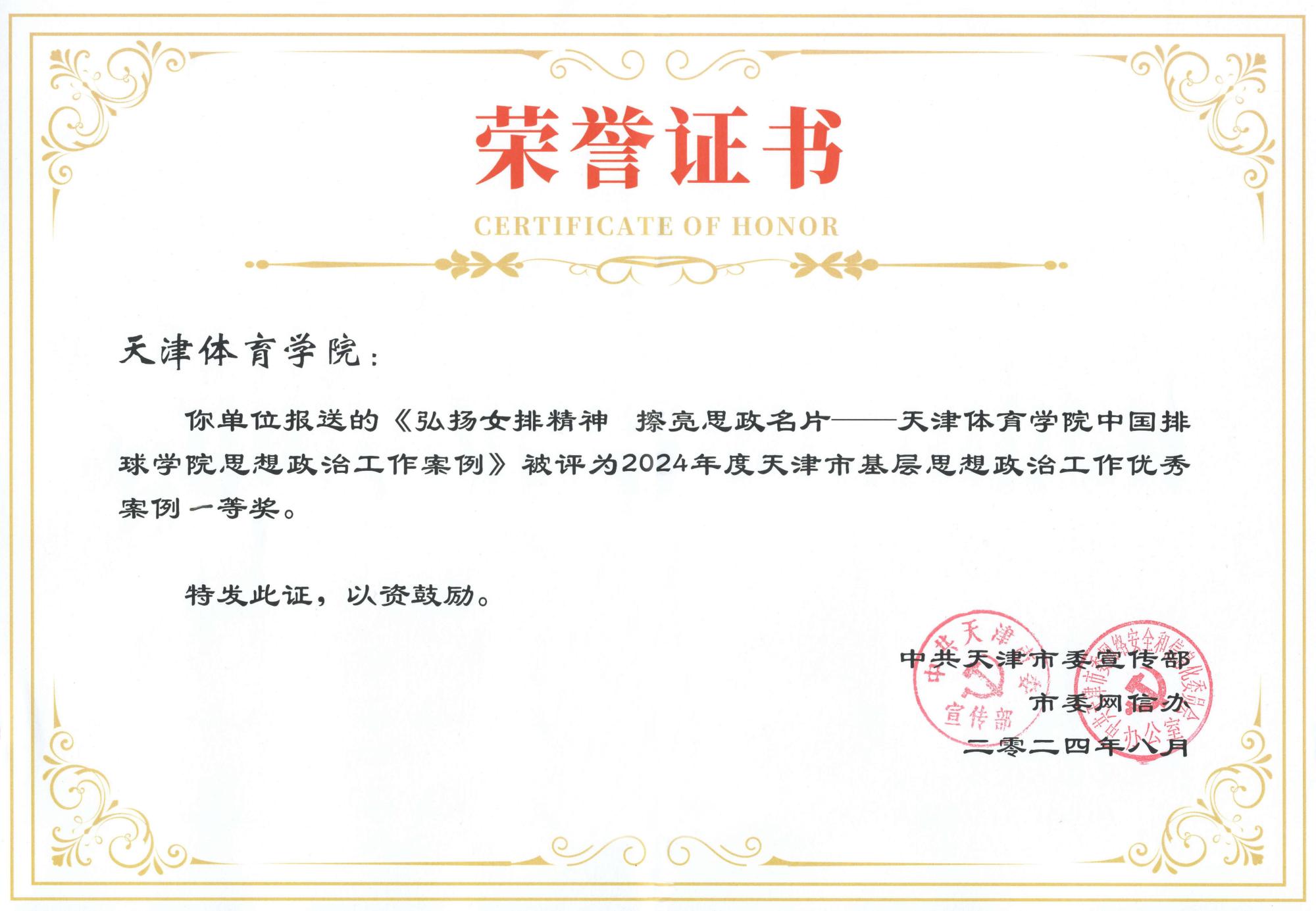 中国排球学院思想政治工作案例”,被评为2024年度天津市基层思想政治工作优秀案例一等奖。