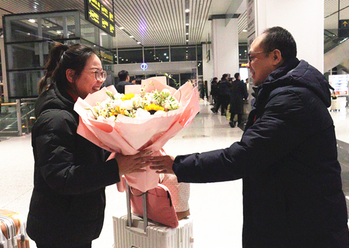 第六批援疆实习支教团16名师生圆满完成为期三个半月的实习支教工作,从新疆和田地区策勒县平安抵津、载誉归来。校党委副书记宋爱军,党委学工部部长田向国,社会体育学院党总支书记张楠、副书记靳庆伟,以及党委学工部干部、辅导员和学生代表一行,在天津滨海国际机场大厅迎接支教团师生,以简短而温馨的迎接仪式表达崇高敬意。